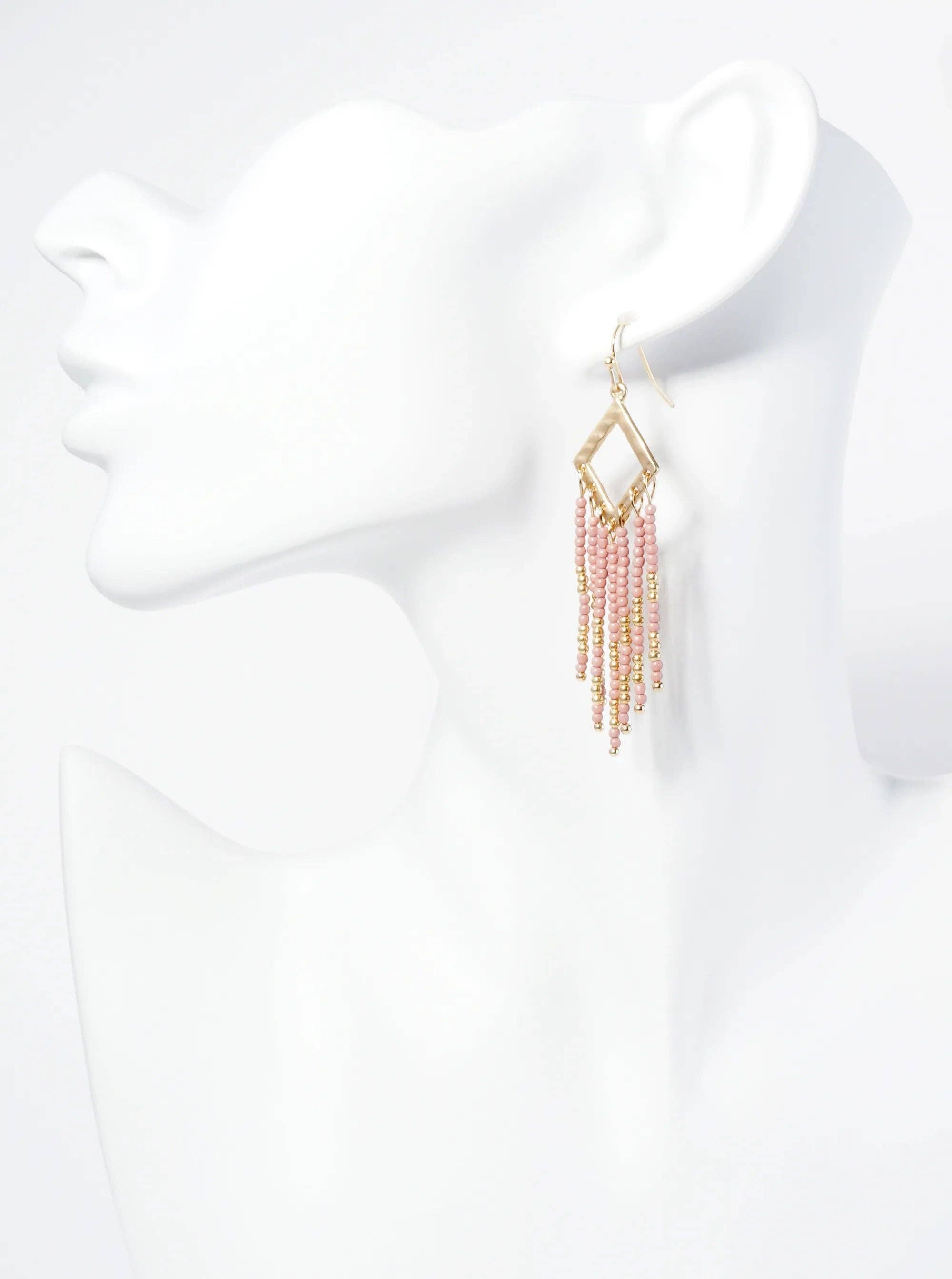 Boho Chic Seed Bead Fringe Earrings: Dusty Pink