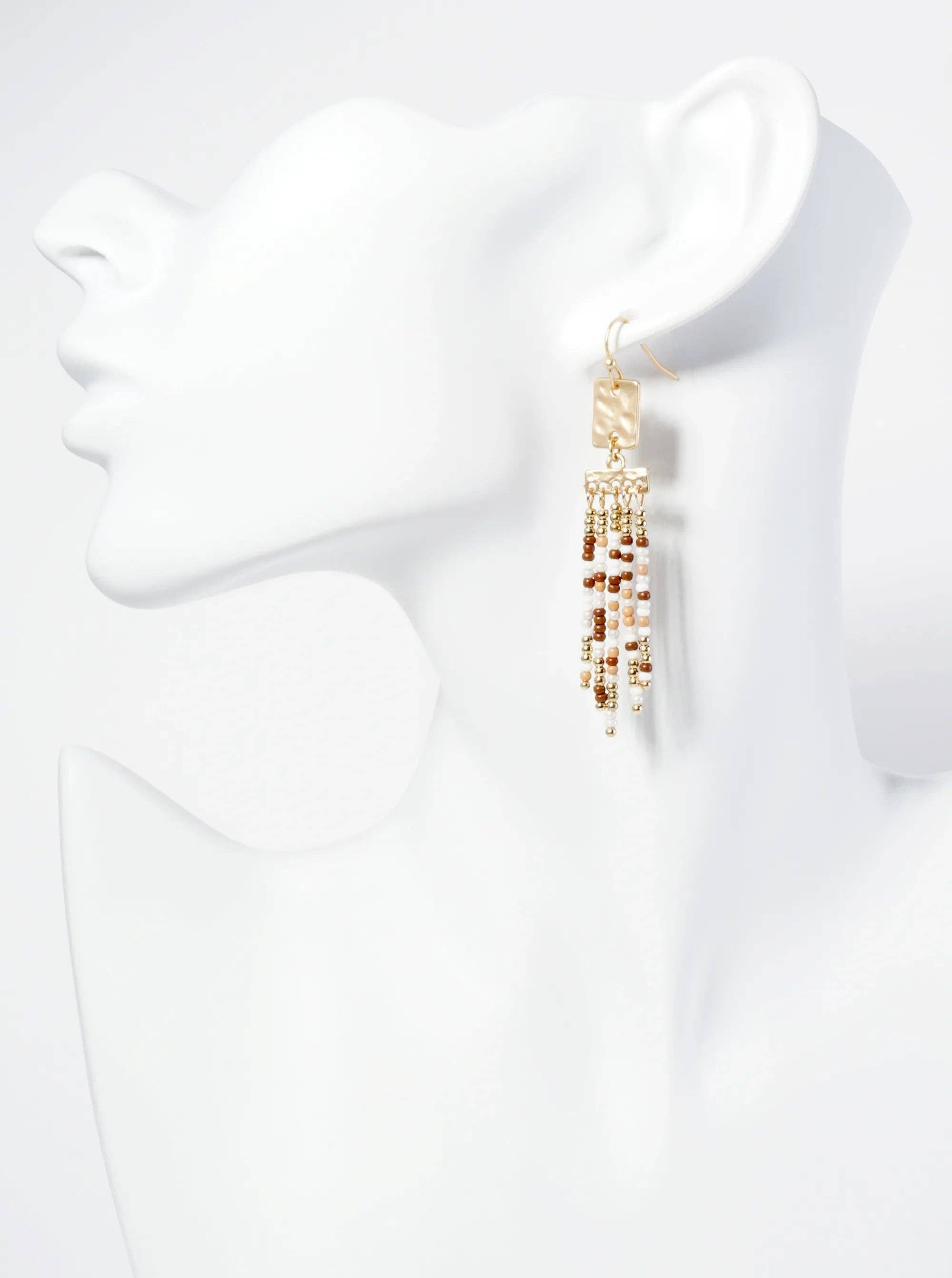 Add a touch of bohemian elegance to your outfit with Wild Honey's Boho Chic Seed Bead Fringe Earrings. These tassel earrings effortlessly blend style, making them a versatile accessory for any occasion. Enjoy the blend of style and comfort with these lightweight, beautifully crafted earrings.